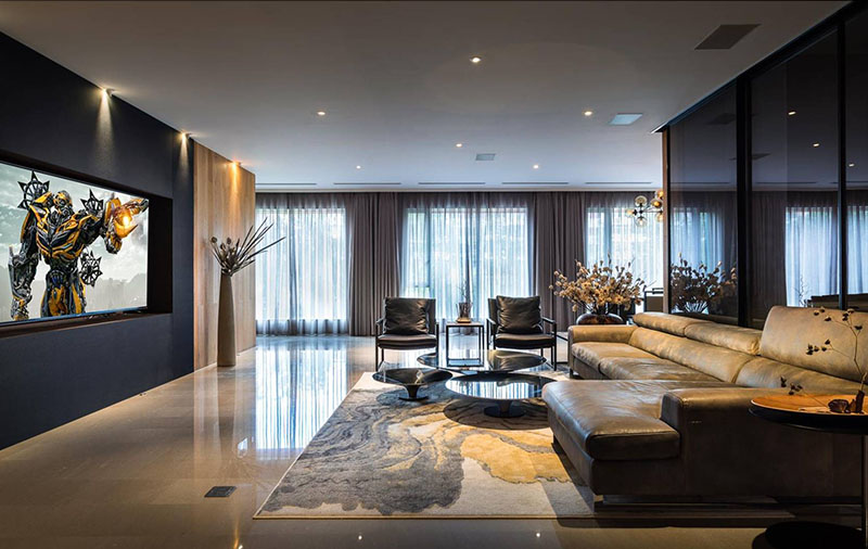 客廳影院因地制宜,更大程度利用環(huán)境??蛷d影院不拘泥空間和形式,能夠更好地把客廳的本身所具有的優(yōu)勢(shì)利用起來(lái),空間大,觀影的效果自然更佳。