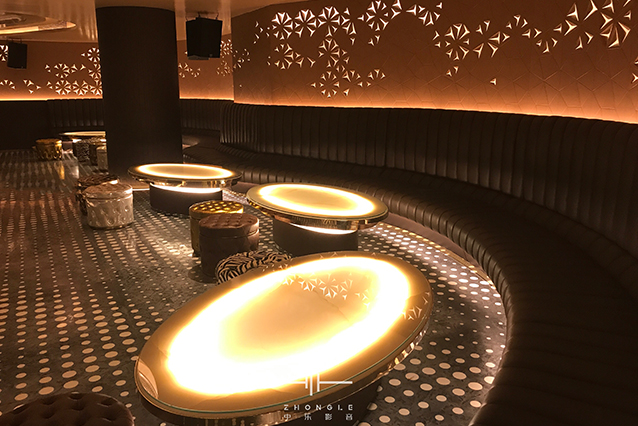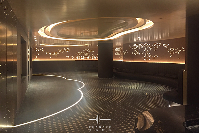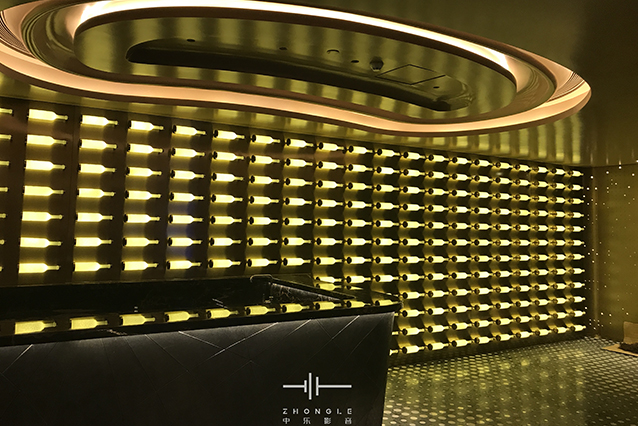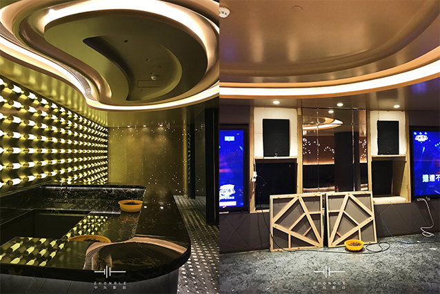 這是對(duì)卡拉OK要求極高的一個(gè)項(xiàng)目,面積非常大,但層高只有2.9米(完成面),天花內(nèi)部非常多梁影響造型設(shè)計(jì)。通過與專業(yè)的設(shè)計(jì)公司配合,最終給到業(yè)主滿意的設(shè)計(jì)方案。在聲學(xué)上最難處理的是減振和弧形造型的聲聚焦問題,通過中樂團(tuán)隊(duì)的精心設(shè)計(jì)和項(xiàng)目施工過程對(duì)每一個(gè)細(xì)小問題的處理,最終交付出非常滿意的答卷。通過這樣的高要求的項(xiàng)目,讓中樂團(tuán)隊(duì)的實(shí)力又一次得到升華。