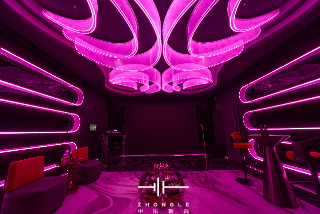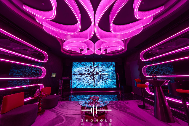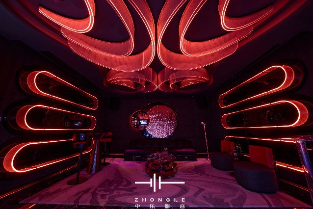 動(dòng)態(tài)美學(xué)設(shè)計(jì):突破傳統(tǒng)KTV包廂范式,由中樂設(shè)計(jì)團(tuán)隊(duì)操刀,亞克力導(dǎo)光燈帶、3D立體墻面造型、可變色溫磁吸軌道燈等元素,打造賽博朋克輕奢藝術(shù)等多風(fēng)格主題空間